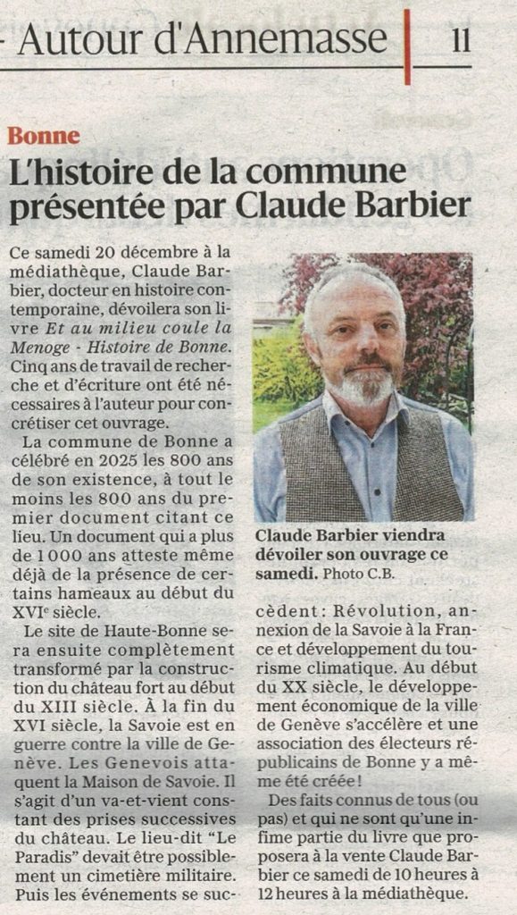 Espace presse Actualité Parus en novembre et décembre 2025 deux monographies sur les communes de Petit-Bornand et Bonne Dans la presse... Previous Next Archives... Interview sur Léman Bleu du 10 novembre 2023 Interview 23/11/2023 Radio Lac Cliquer ici pour écouter l’interview